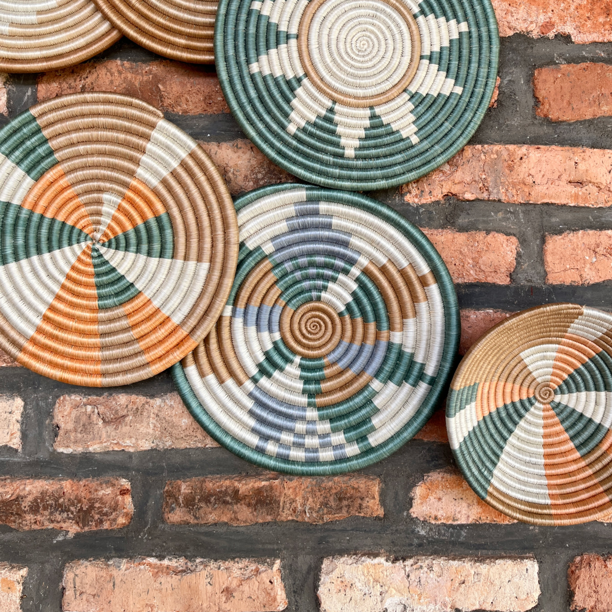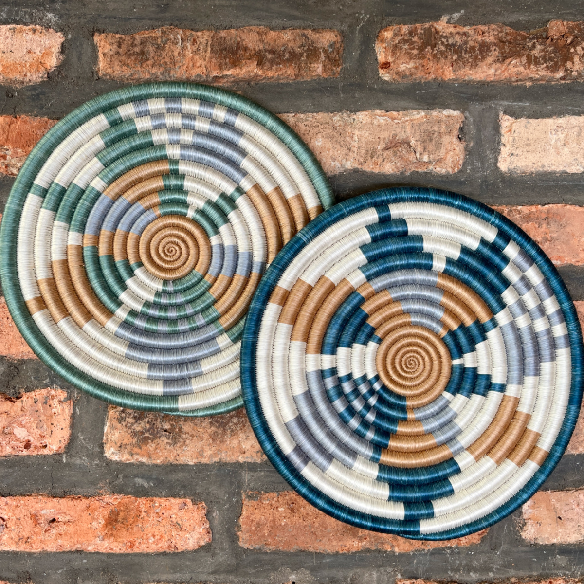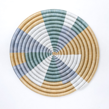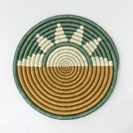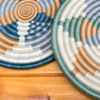 Each trivet begins with the gathering of forest grasses and large sisal leaves. Once the sisal fibers have been extracted from the leaf, cleaned, dyed, and dried, the artisans are ready to begin. The sisal fibers are threaded around and around a core of forest grasses, the design taking shape bit by bit. In the end, you have a beautiful and useful addition to your dinner table.